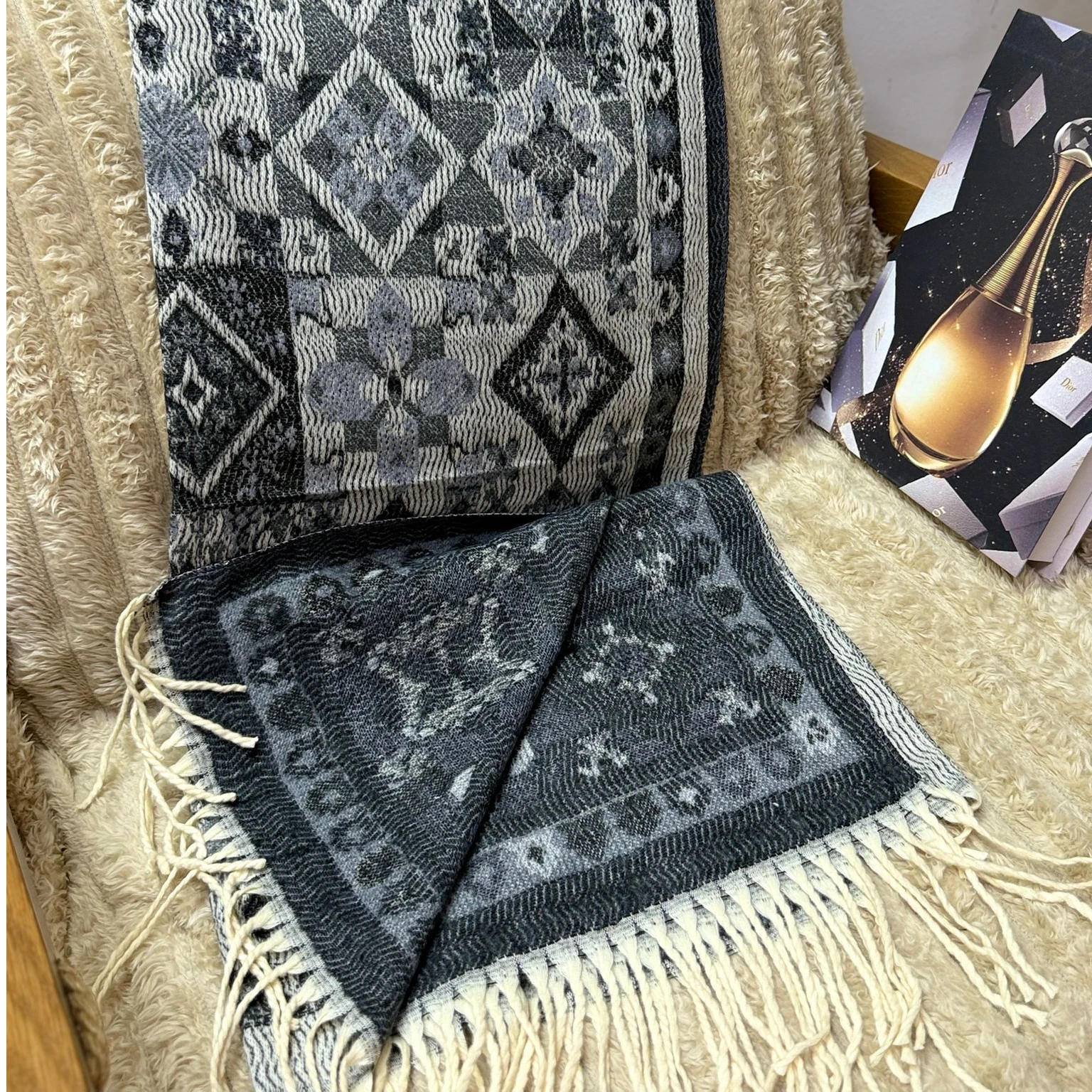 سكارف صوف ناعم اسود و سكني وجهين